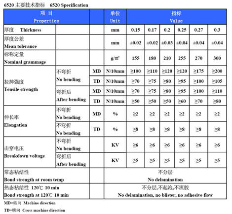 6520复合青壳纸是由聚酯薄膜单面涂胶粘剂,并粘贴薄纸板而成的双层复合材料。具有较高的机械强度和介电性能。适用于小型电机,电器中作槽绝缘,衬垫绝缘及匝间绝缘,是价格比较低廉的电气绝缘材料。